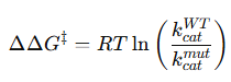 ΔΔG‡ = ΔGmut‡ − ΔGWT‡