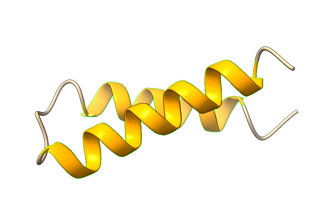 Utilizando la inteligencia artificial Alphafold 2, podemos hacer una predicción de la estructura tridimensional del péptido, es decir, la pequeña proteína que podría formar.