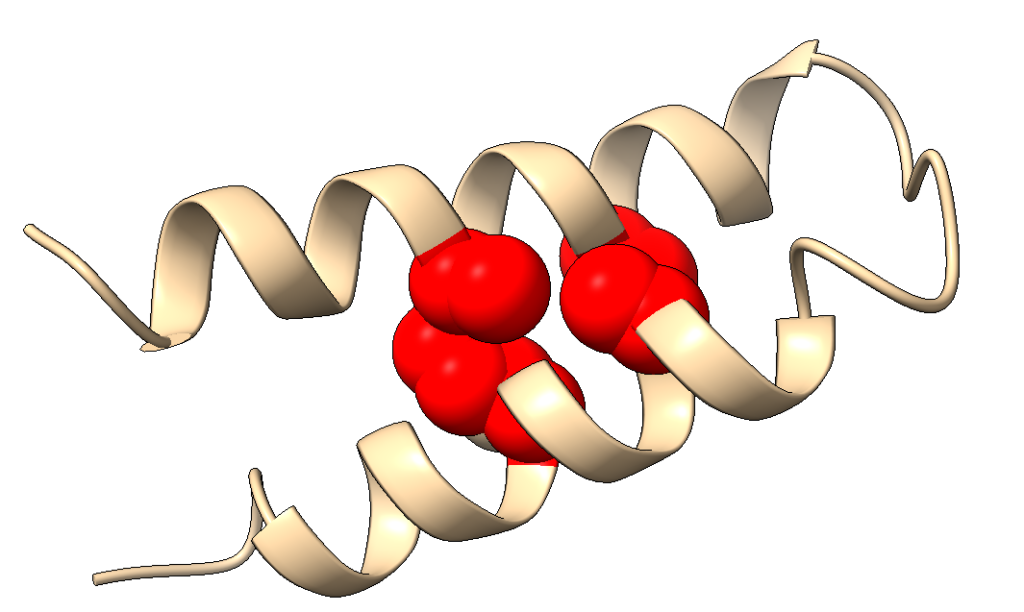 Los cofactores pueden dirigir el plegamiento. Es el caso del grupo hemo, un grupo prostético esencial en el plegamiento y función de proteínas como la hemoglobina y la mioglobina. En nuestro péptido de navidad, la interacción con hemo le conduce a un motivo completamente distinto, formando láminas beta: