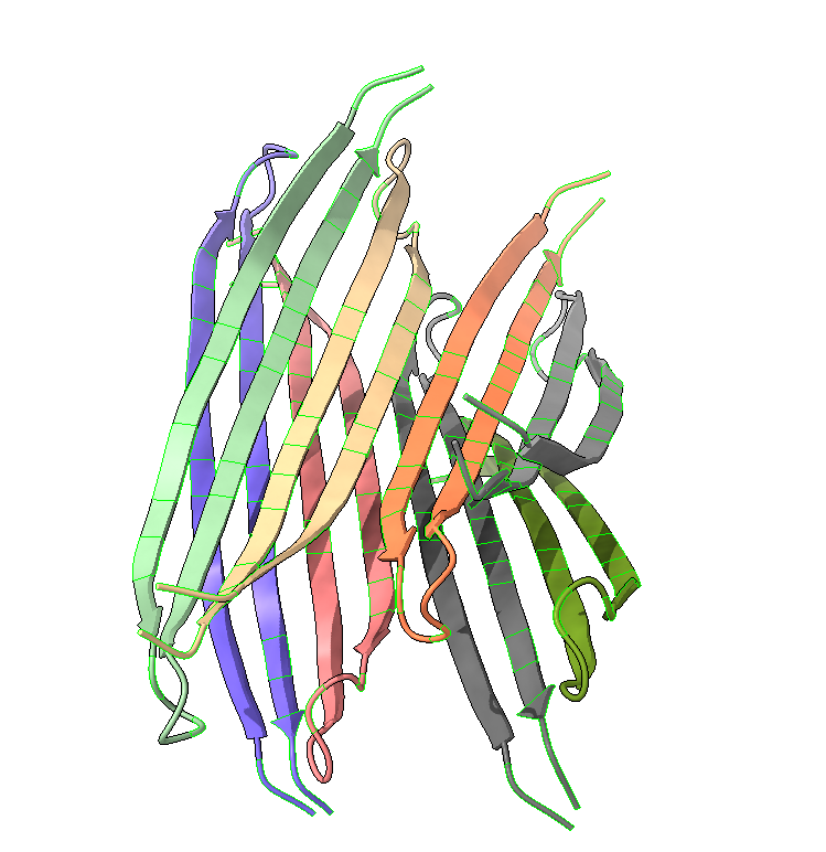 Para evaluar posibles estructuras reales, tenemos la IA Alphafold 3, capaz de predecir estructuras resultantes de la interacción de varias moléculas de proteína o proteína con otros ligandos. Esto nos da perspectivas interesantes. Si evaluamos la estructura resultante de unir varias moléculas del péptido, obtenemos esto: