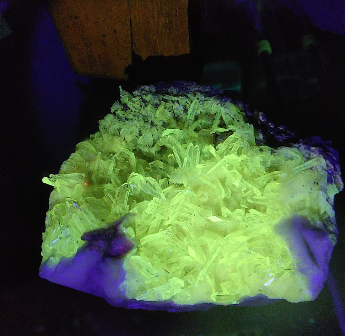 Nos vamos a centrar en los minerales. No todas los minerales son fluorescentes. Para que un mineral brille bajo luz UV o azul (las mejores luces de excitación) debe contener los ingredientes adecuados: los llamados elementos activadores o centros luminiscentes. Estos son típicamente trazas de ciertos elementos o moléculas incrustadas en la red cristalina que son capaces de provocar el fenómeno. En definitiva, la fluorescencia es una obra colectiva entre la luz UV, el activador adecuado y el entorno cristalino que lo acoje.